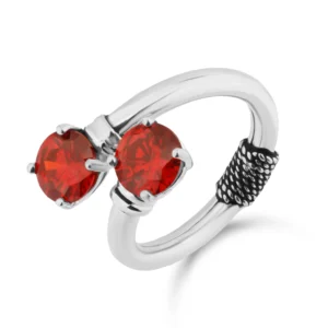 خاتم فضي بحجر الزمرد الأحمر