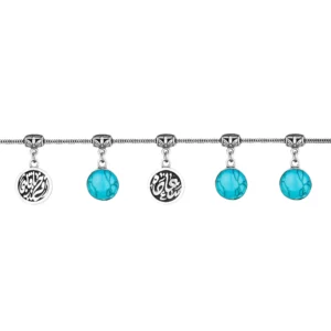 سوار من الفضة مع عملات منقوشة بكلمات بالخط العربي و أحجار الفيروز