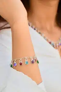 سوار من الفضة مع الأحجار الملونة الأنيقة