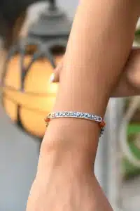 سوار من الفضة و الأحجار الملونة منقوشة بعبارة لست أمام عيني لكنك كل ما أرى”